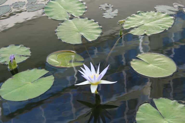 - Emergidas: sus tallos, hojas, flores y frutos se encuentran total o parcialmente fuera del agua, pero enraízan en el lecho del estanque. Un ejemplo de estas son las nenúfares y papiros.