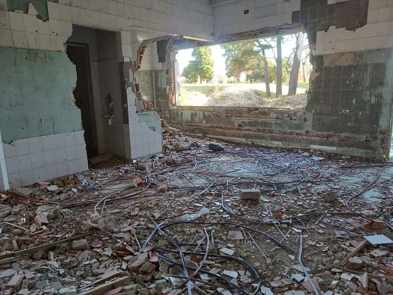 La estructura del edificio donde funcionó el Policlínico Ferroviario aún da cuenta del imponente proyecto sanitario que celebraba la comunidad en 1953, a instancias del movimiento sindical peronista. A pesar de la destrucción, producto del abandono y la desidia, aún se puede palpar el impacto que una obra de esa magnitud tuvo en el Tandil de hace 70 años. En tiempos más recientes, la cáscara se transformó en el centro de los reclamos de los vecinos más próximos y en los últimos meses, recrudeció la inseguridad con intrusiones constantes y su resignificación como centro operativo para la reducción de cables y escondite del producido de otros delitos contra la propiedad.